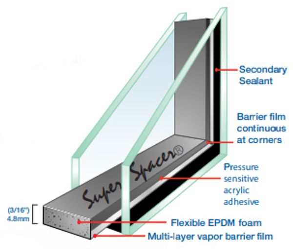 Super spacer is a flexible, organic foam spacer that provides excellent perimeter insulation for sealed glazing units. It is an extruded, thermoset polymer structural spacer with integrally incorporated desiccants. Super Spacer is flexible and always returns to its original cured shape.