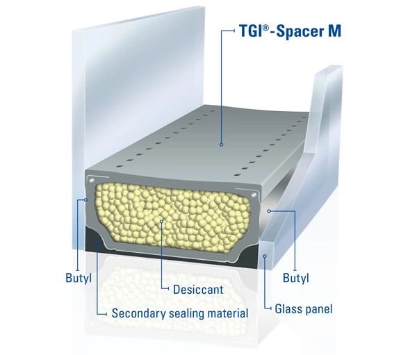 Super Spacer TriSeal features a continuous vapor barrier backing across the profiled back of the spacer, and is engineered to accept both a butyl primary seal and a silicone secondary seal.