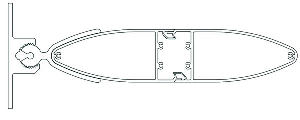 Extruded from 6063-T5 aluminum with a minimum wall thickness of .125. Wall thickness is increased to .1875 at the bracket attachment location. This sunshade is designed for use with all of Marlin System 60 Curtain Wall